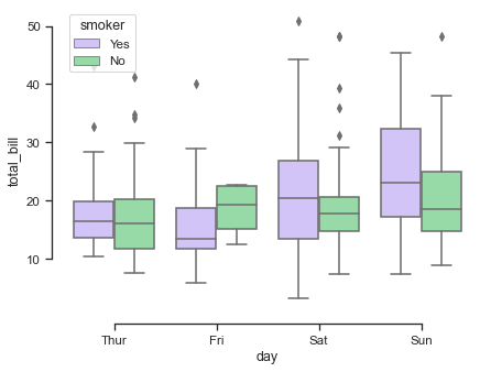 seaborn components used: set_theme(), load_dataset(), boxplot(), despine()
