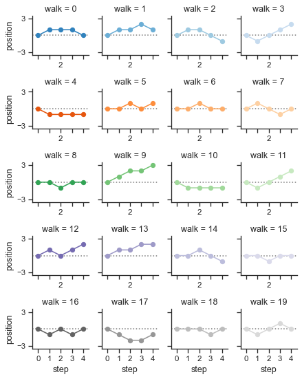 # Initialize a grid of plots with an Axes for each walk