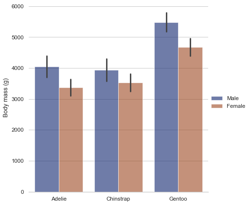 seaborn components used: set_theme(), load_dataset(), catplot()