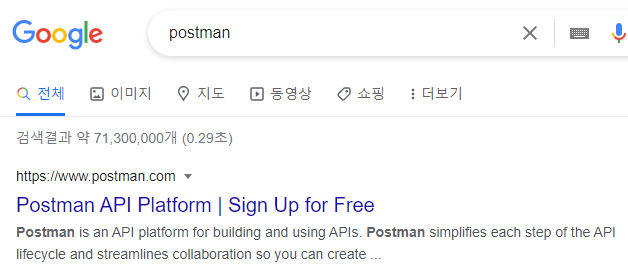 - postman 검색 혹은 링크를 클릭하여 다운로드 : https://www.postman.com/