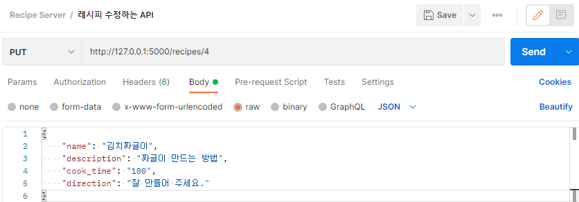- PUT - 로컬호스트/recipes/수정을 원하는 데이터의 인덱스