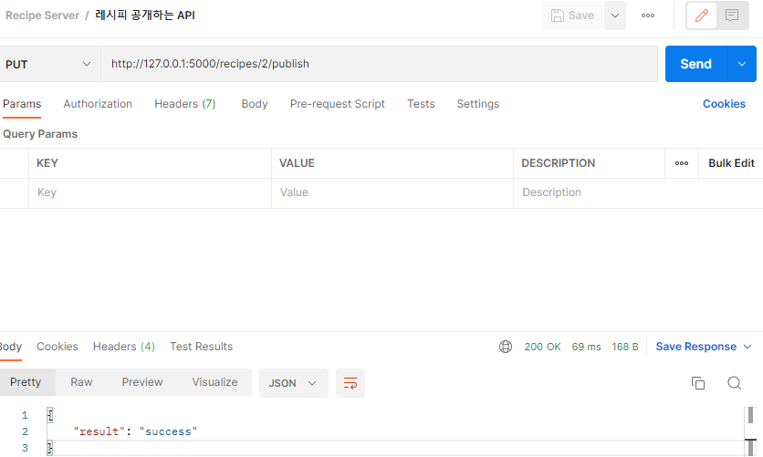 - 서버 URL : 로컬호스트/recipes/<int:recipe_id>/publish