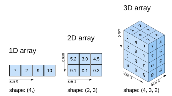 - numpy.shape : 해당 배열이 갖는 크기 확인