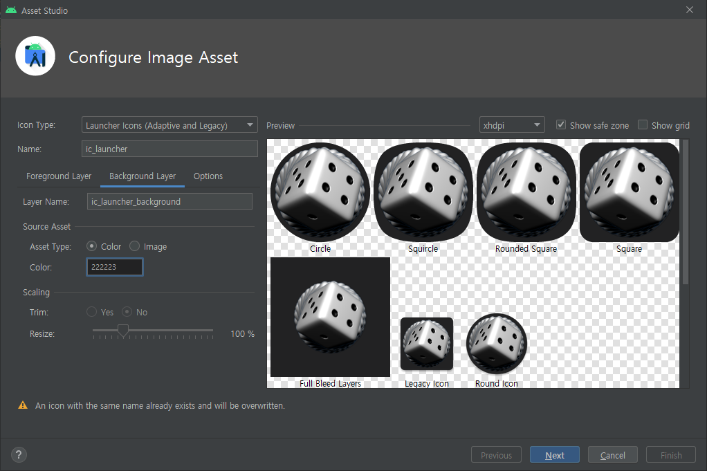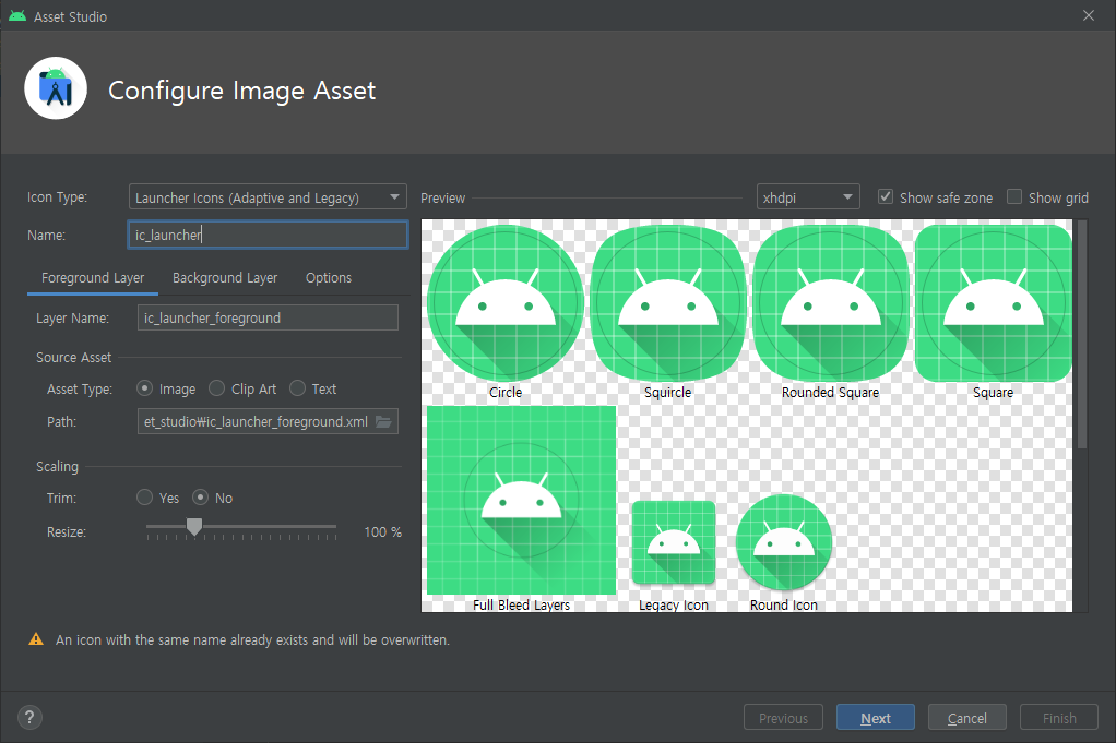 - res 폴더에서 오른쪽 클릭 - New - Image Asset