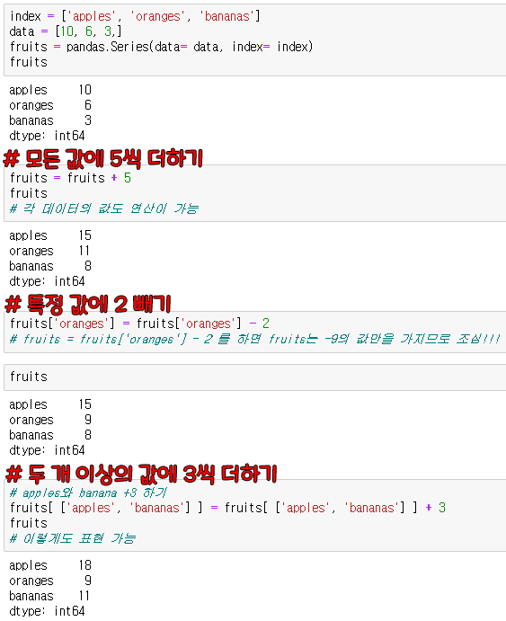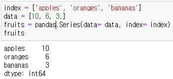 - pandas.Series(data= 값, index= 인덱스의 값)