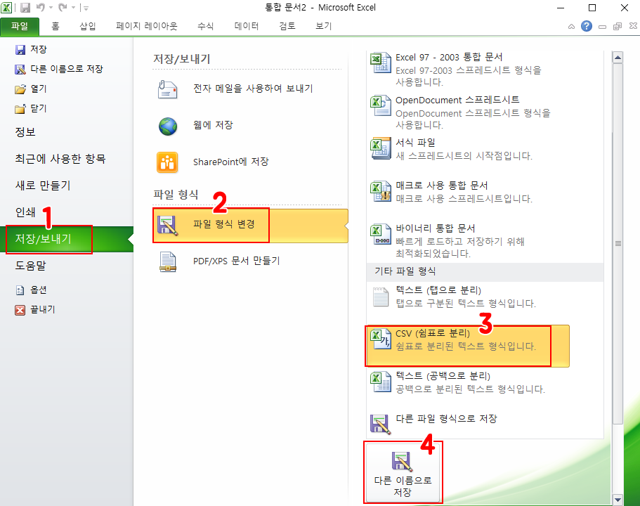 - 저장할 때 확장자는 반드시 .csv 로 저장