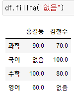 - .fillna(n) : NaN의 값을 n 값으로 모두 변환