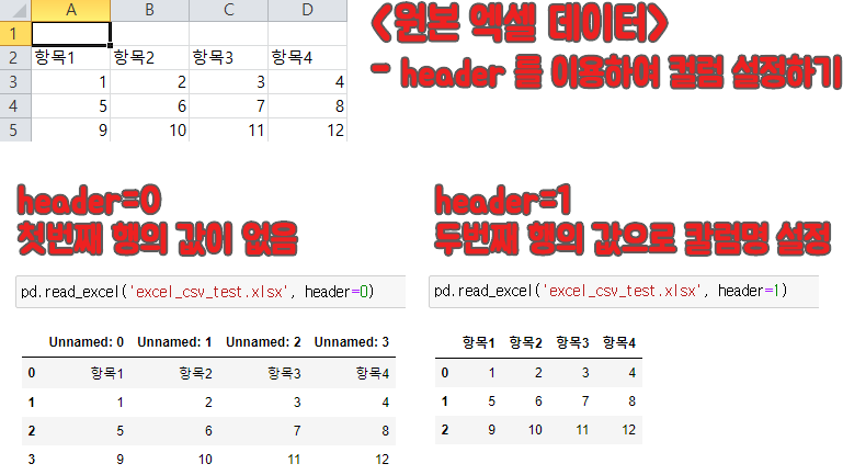 - header : 컬럼명이 될 행 번호(0부터시작)