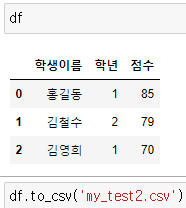 - 데이터프레임을 파일화했던 파일(my_test2.csv) 불러오기