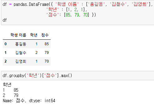 - 예시) 학년별로 가장 높은 점수 확인하기