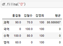 - df.replace( 기존 값, 바꿀 값) : 기존의 값을 바꿀 값으로 변경
