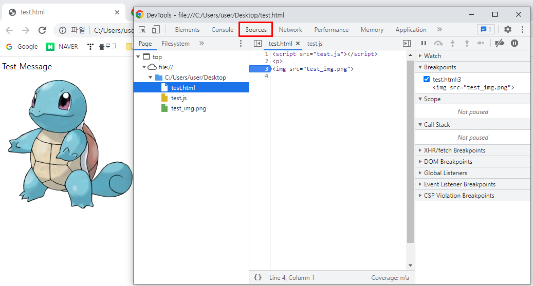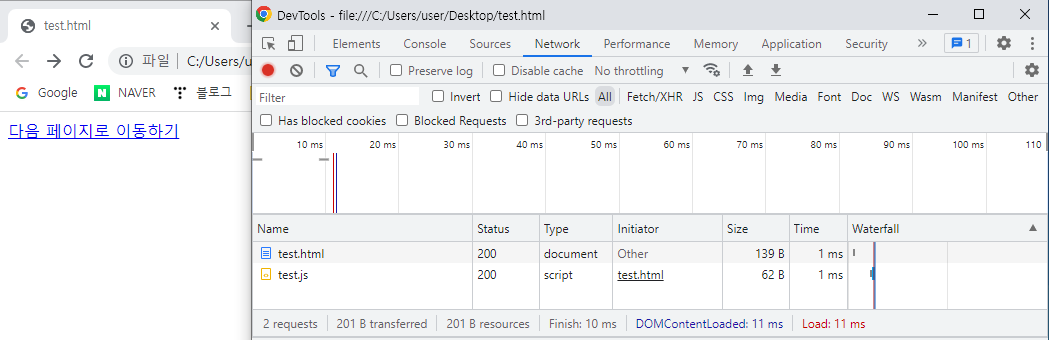 - test.html 파일과 test.js 파일 응답