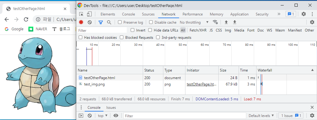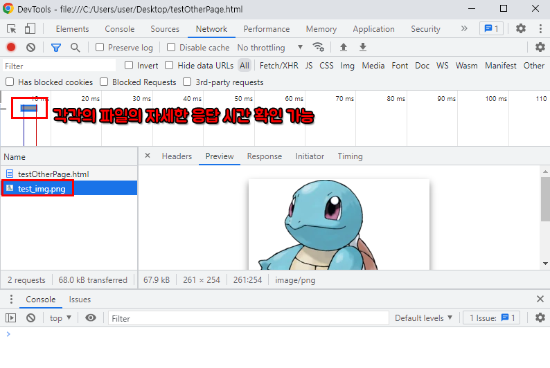 - testOtherPage.html 파일과 test_img.png 파일 응답