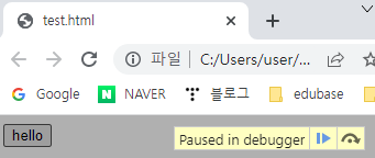 - 중지점으로 인하여 alert 대화상자는 출력되지 않음