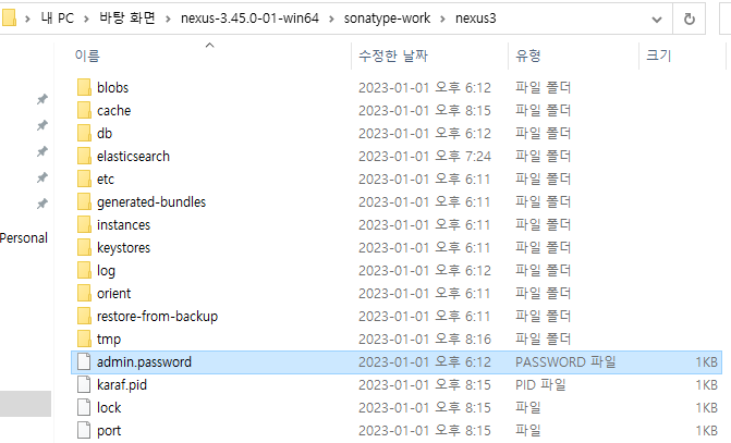 - '넥서스가 설치된 폴더 - sonatype-work-nexus3' 경로로 이동