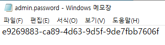- admin.password 파일을 메모장으로 열기 - 문자열을 복사