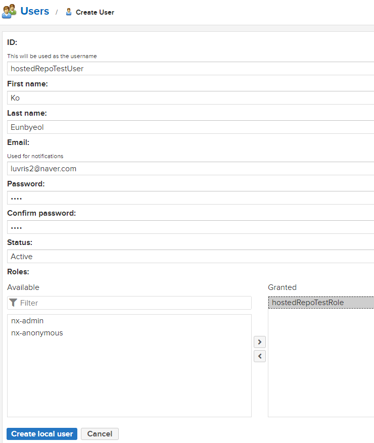 - group : 여러 리파지토리를 그룹화함 (hosted + proxy)