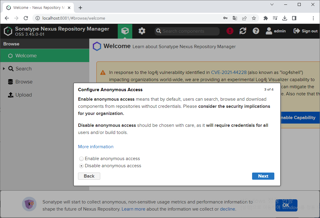 - 해당 포스팅에서는 'Disable Anonymous Access' 옵션 선택