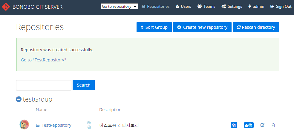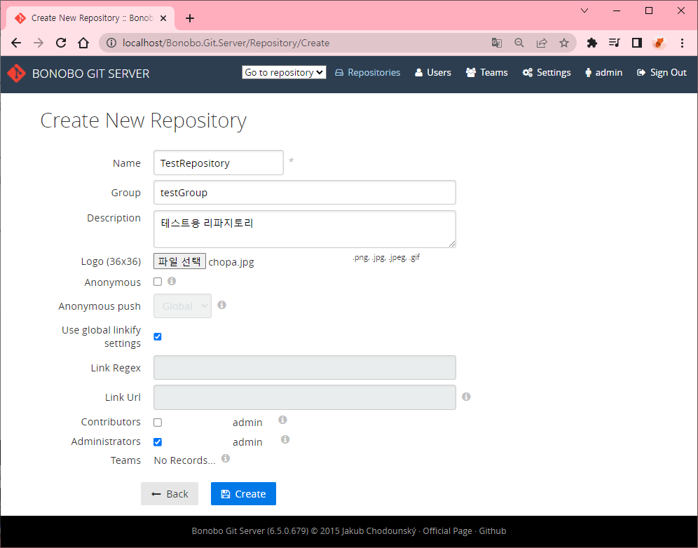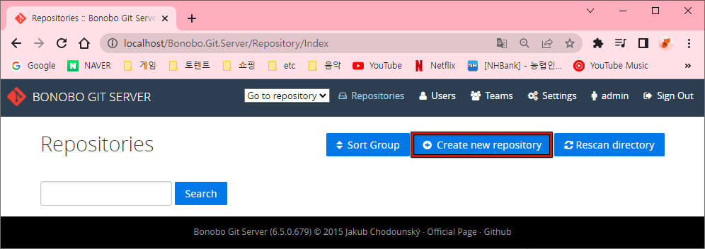- (보노보 깃 서버 접속 후 로그인) Create new repository