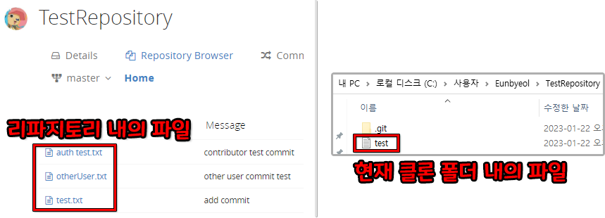 - 추가한 파일 : test.txt