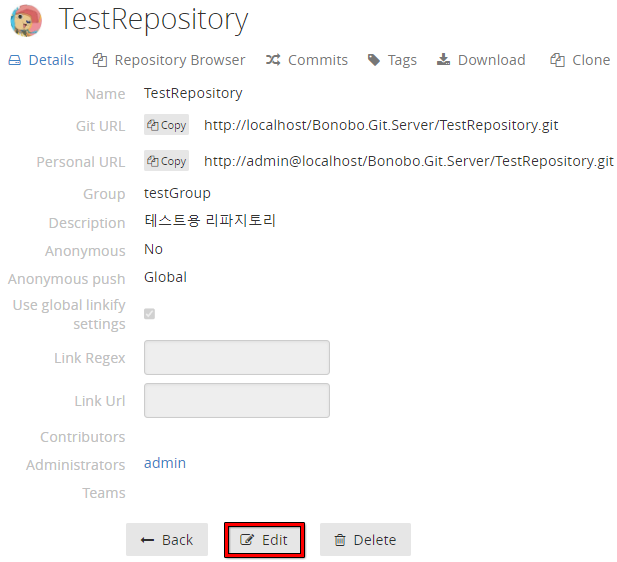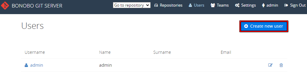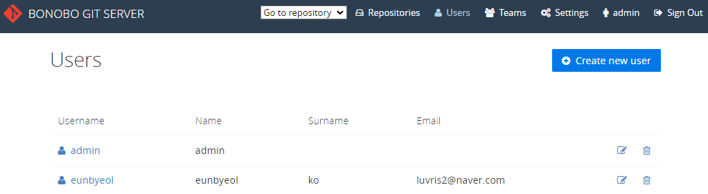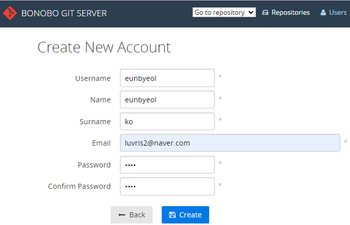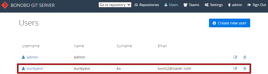 - (보노보 깃 서버에 로그인) Users 메뉴 - Create new user