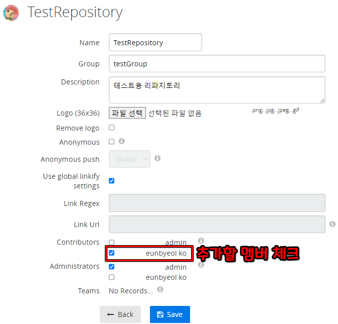 - (관리자 계정으로) 멤버를 추가할 리파지토리 선택