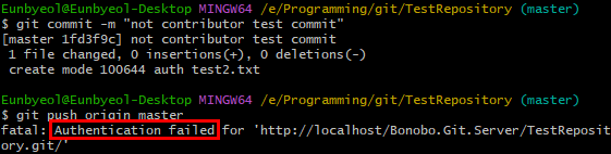 - 자격증명 실패 오류로 푸시가 되지 않음