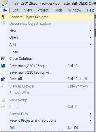 - File - Connect Object Exploer