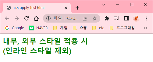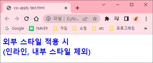 외부 스타일 적용, 인라인, 내부 스타일 제외