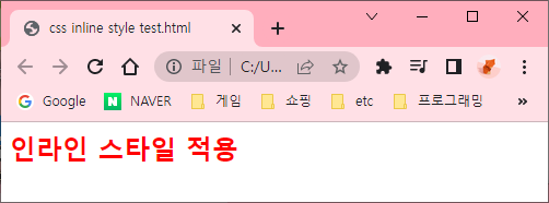 - 인라인 스타일 : 빨간색