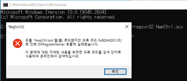모듈을 로드했지만 오류코드 0x80040201(으)로 인해 DLLRegisterServer 호출에 실패했습니다.