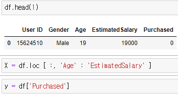 - 나이와 연봉을 분석해서 물건 구매 여부를 예측