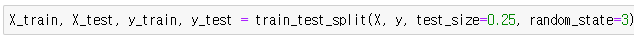 - from sklearn.model_selection import train_test_split 호출