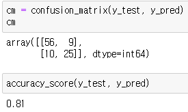 - from sklearn.metrics import confusion_matrix, accuracy_score 호출