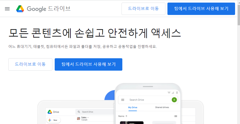- 인터넷에서 구글 드라이브 검색 (https://www.google.com/intl/ko_KR/drive/)