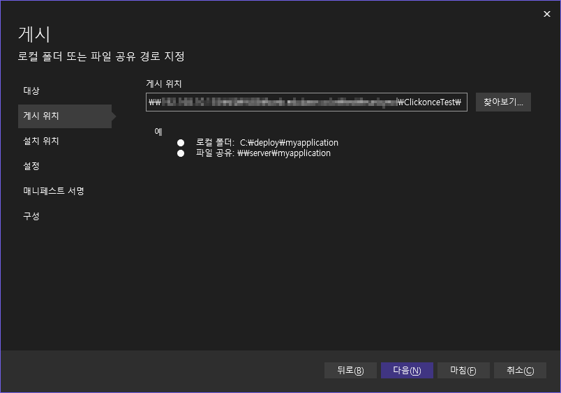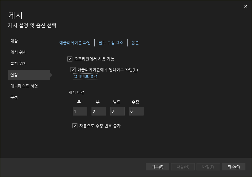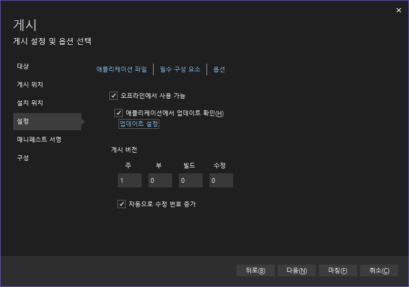 Clickonce 게시 (배포) 및 자동 업데이트 설정