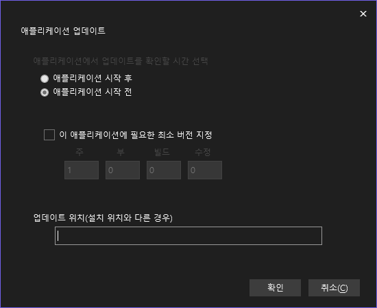 - 업데이트 위치 내용 삭제(설치 위치를 지정하였으므로) - 확인