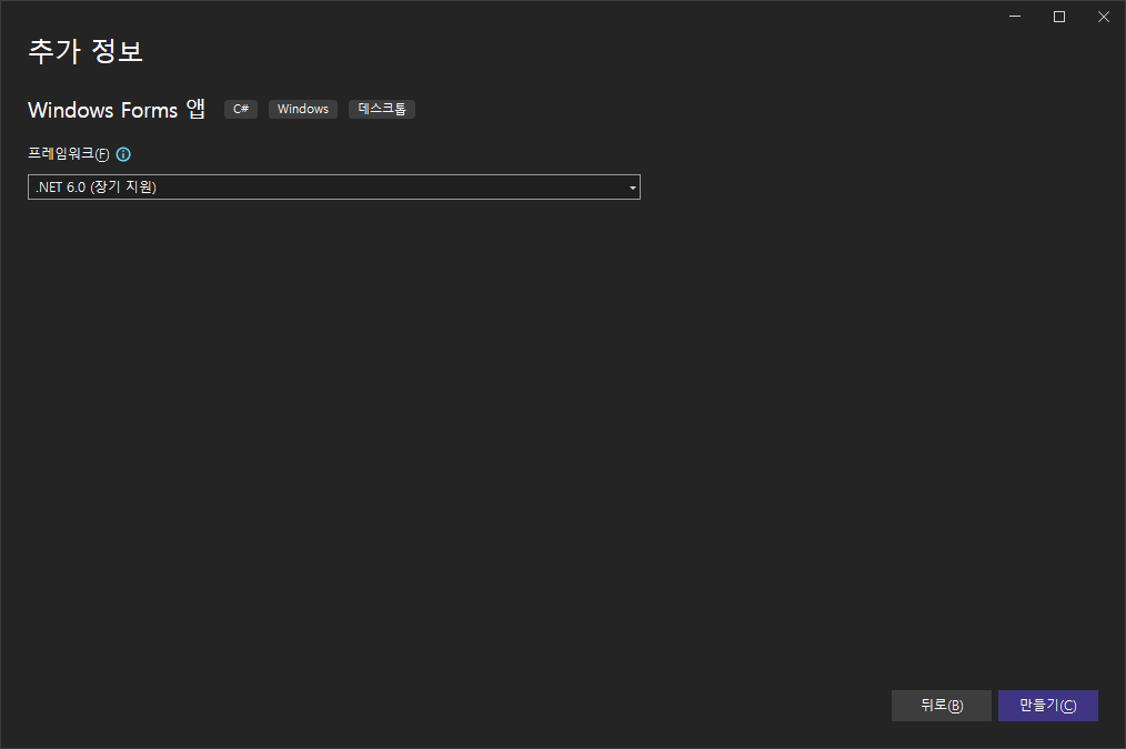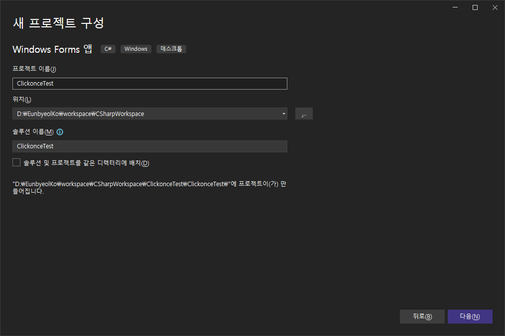 Winform 기반 새 프로젝트 생성