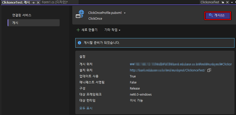 Clickonce 게시 (재배포)
