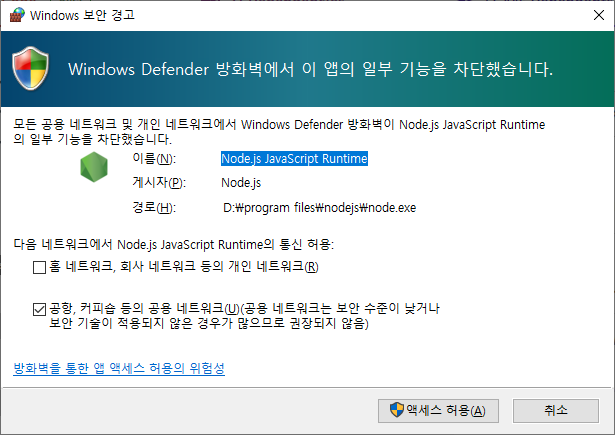 - Windows 보안 경고가 뜰 경우 "액세스 허용"