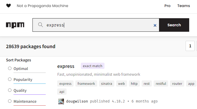 - 키워드 'express' 입력 후 검색(search)