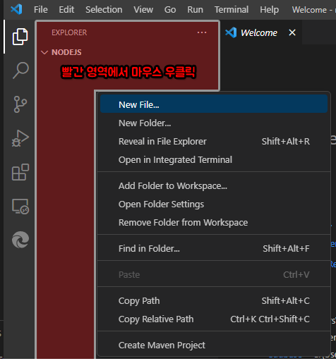 - EXPLORER에서 마우스 우클릭 - New File