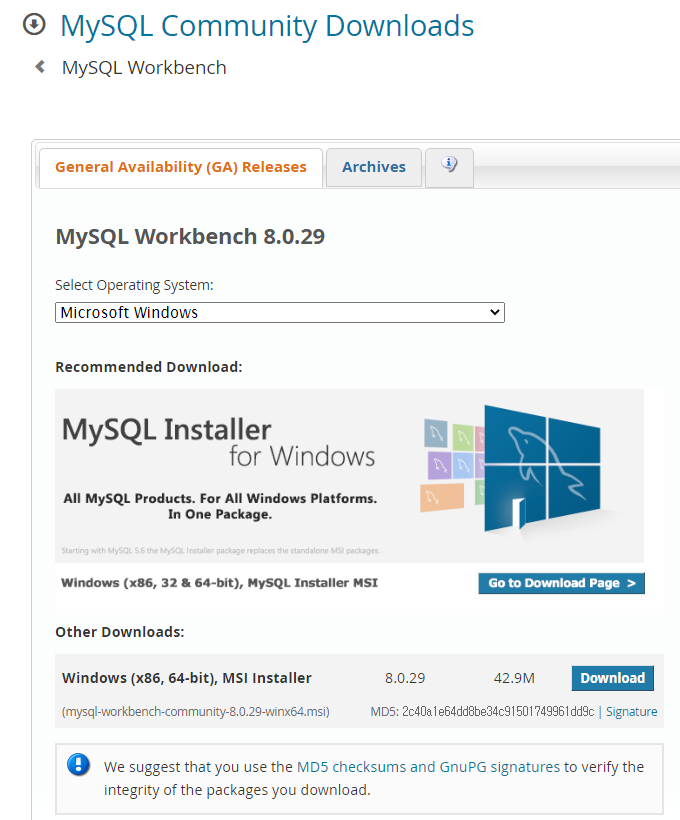 MySQL Workbench를 설치할 때 MySQL도 같이 설치합니다.