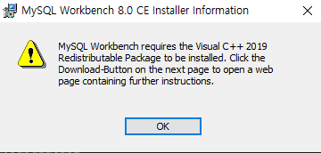 MySQL Workbench가 설치가 되지 않고 아래와 같은 오류가 출력될 수 있습니다.