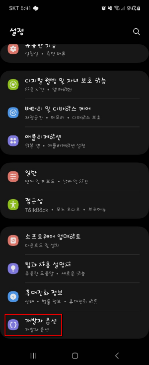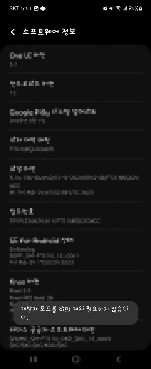 - 내 휴대폰의 경우는 개발자 모드가 이미 활성화 있어서 필요하지 않다고 출력