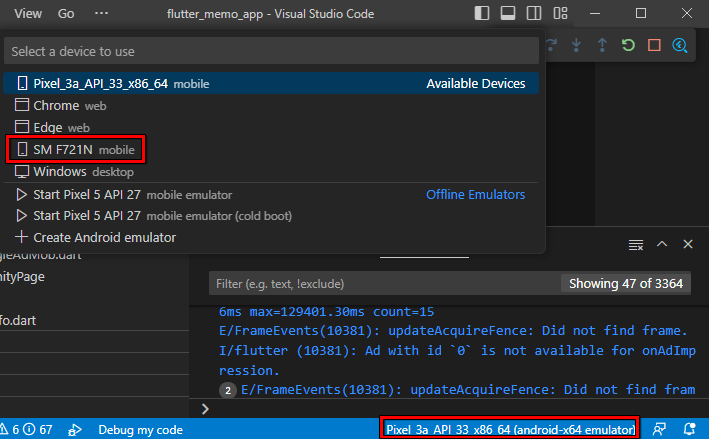 Visual Studio Code에서 안드로이드 기기로 디버깅