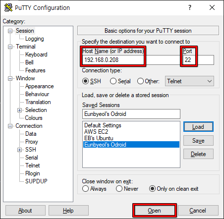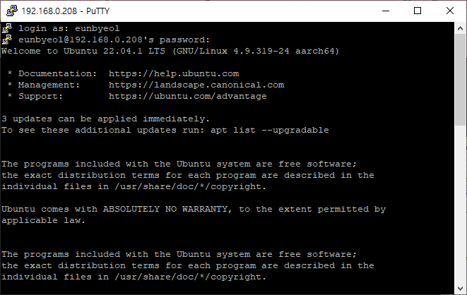 - 오드로이드 초기 비밀번호는 'odroid' 입니다.
