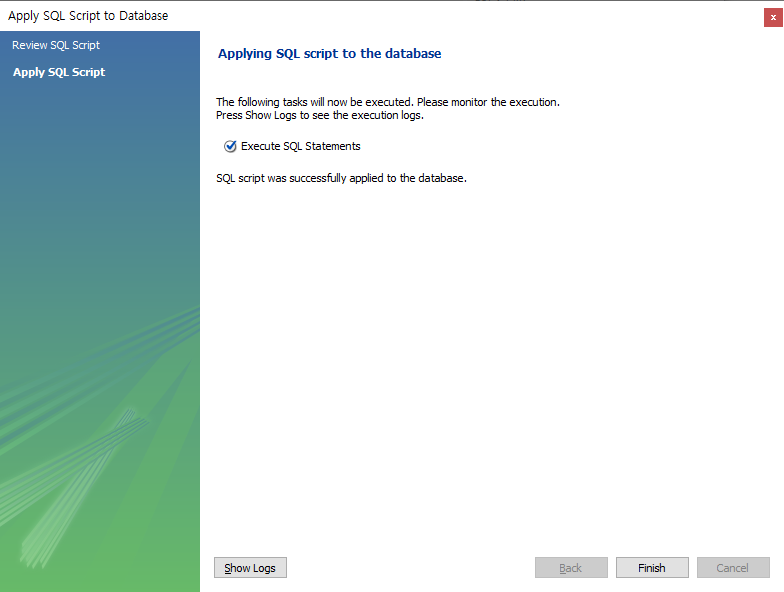 - 사용할 데이터베이스 이름 입력 후 Apply - Apply - Finish
