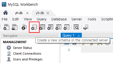 - Create a new schema in the connected servver 클릭 (4번째 아이콘)