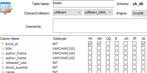CREATE TABLE `yh_db`.`books` (